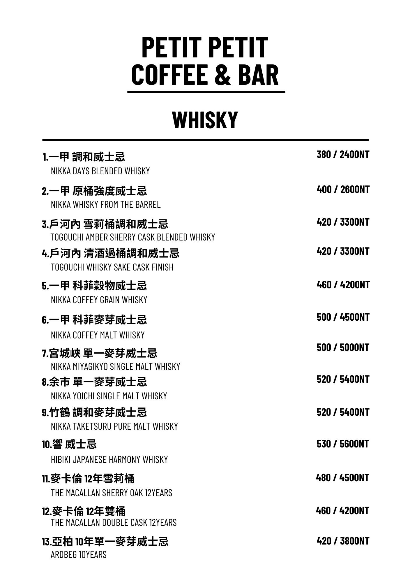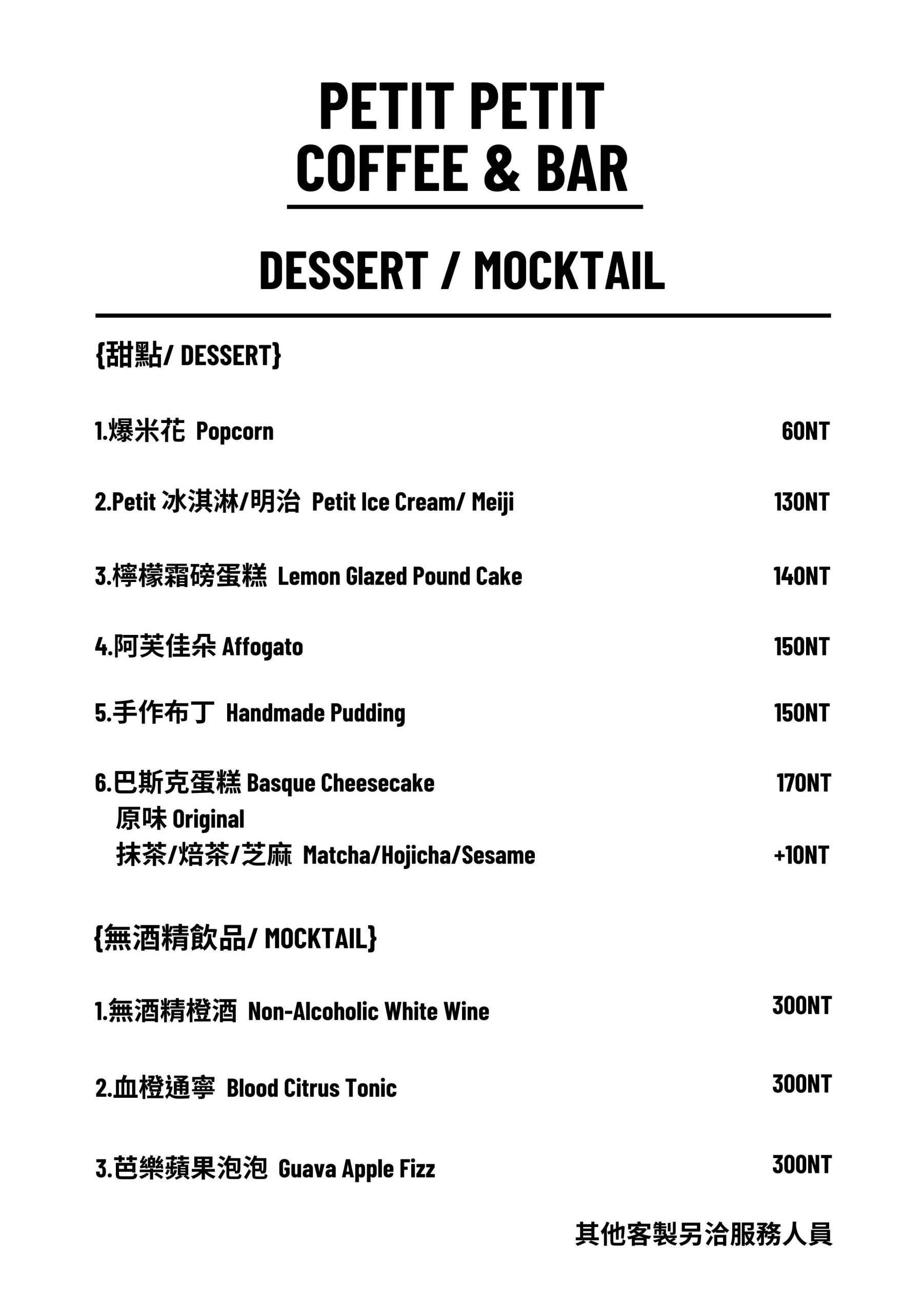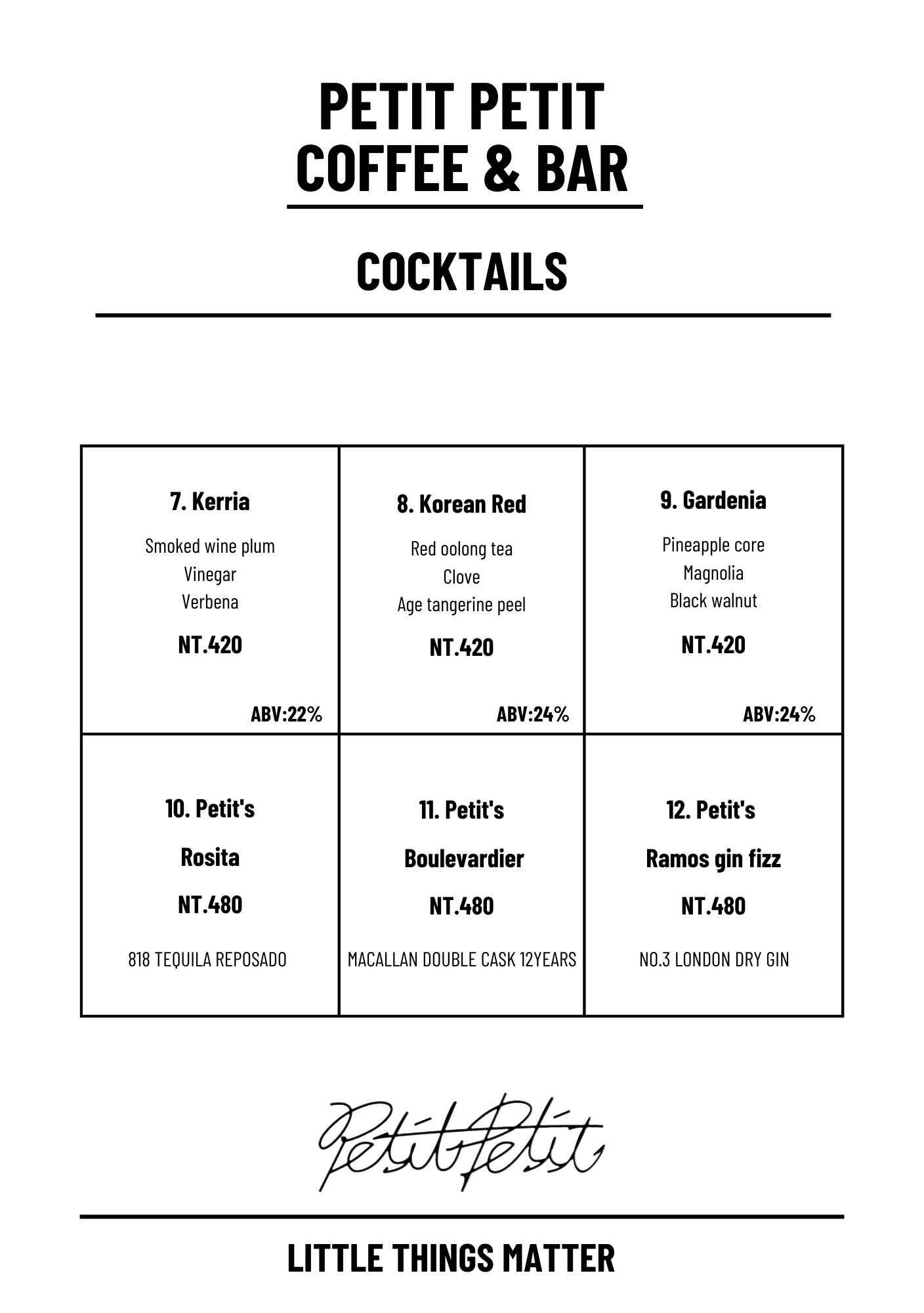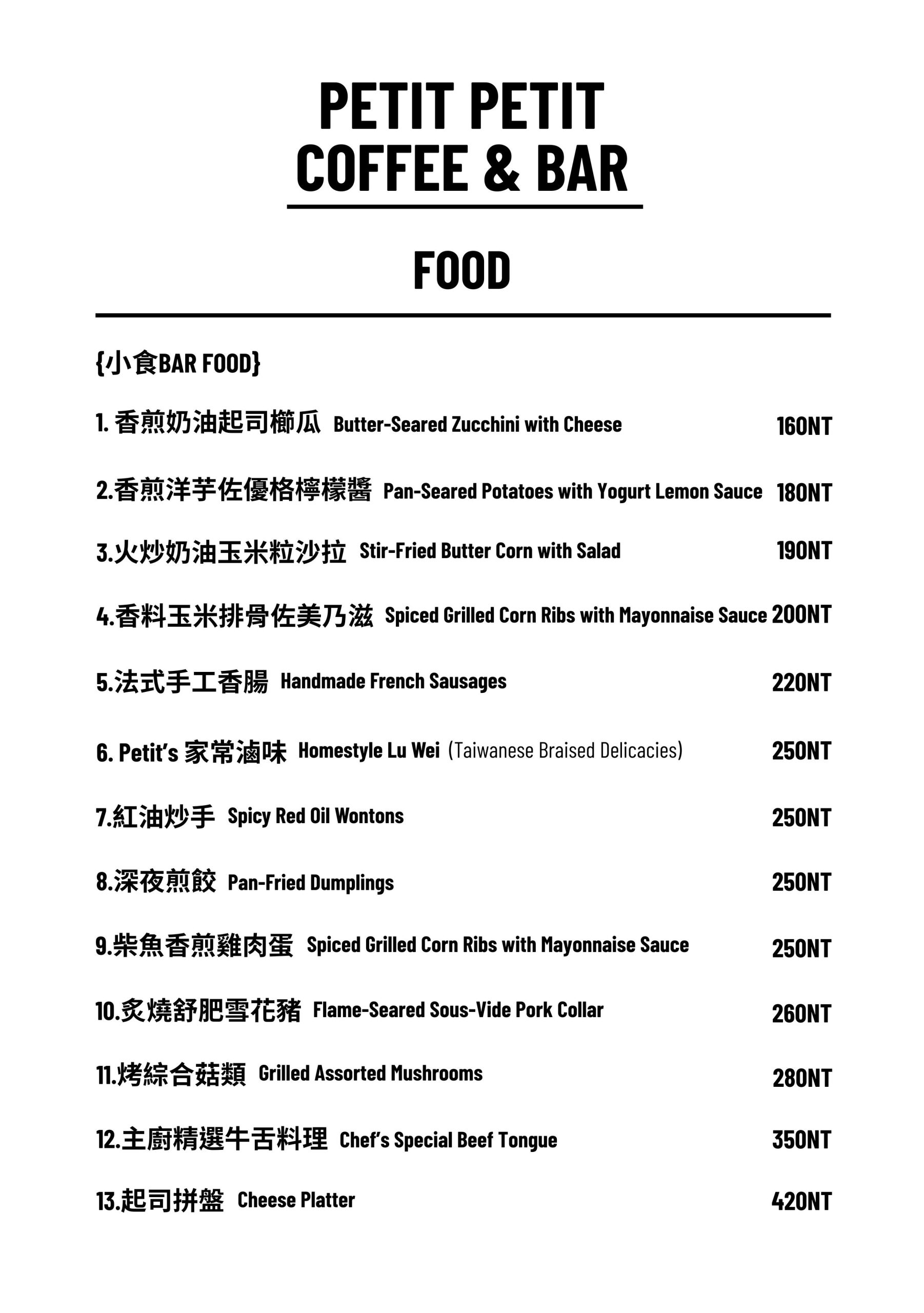 Petit Petit Bar & Coffee菜單