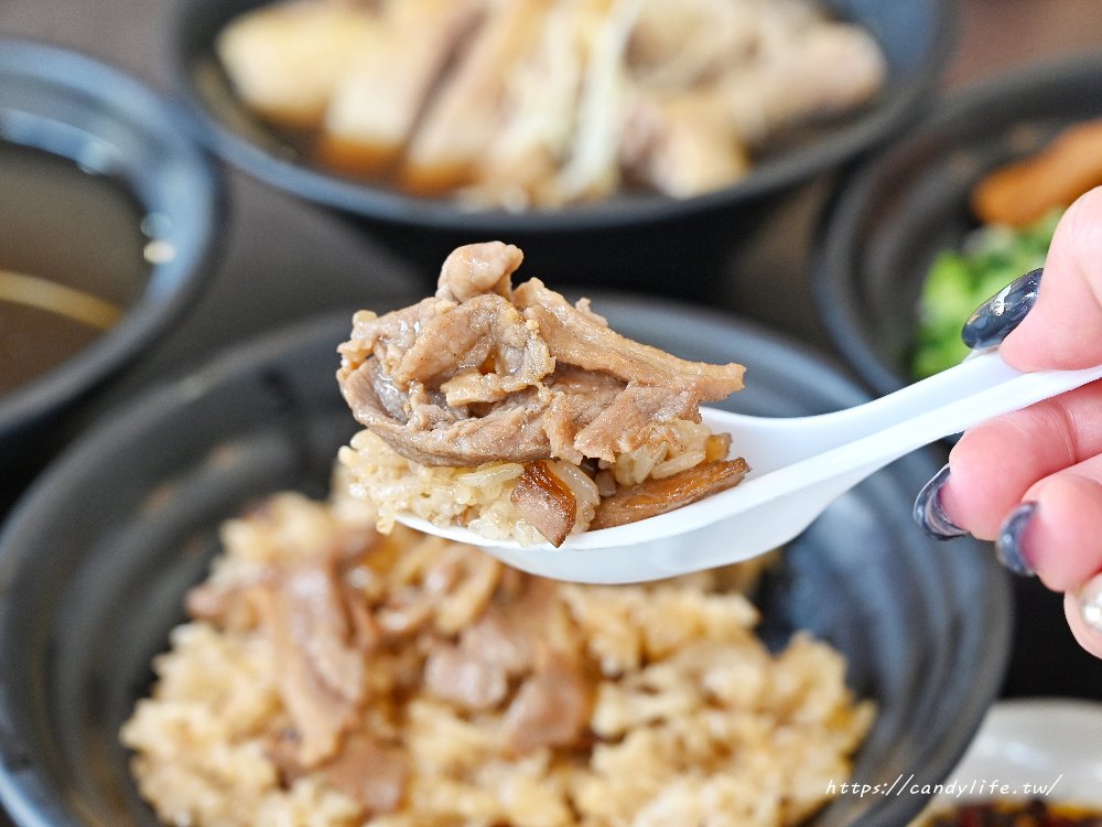鴨肉吃起來除了迷人的鴨肉香氣,還多了麻油香味,肉質超級嫩,搭配香Q米飯及配菜,讓人一口接一口停不下來