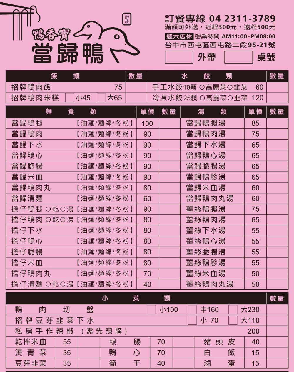店家:御品鴨香寶當歸鴨 – 西屯店