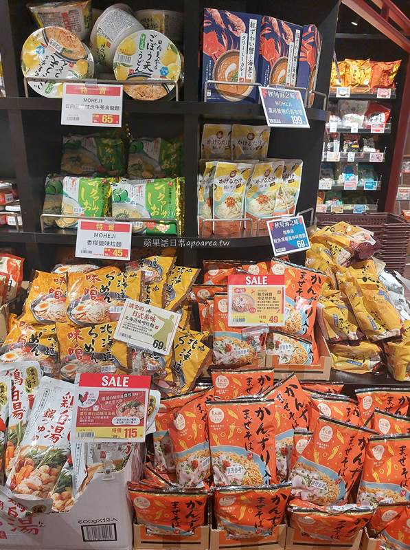 泡麵、湯底、湯包、調味料等食材種類也是琳瑯滿目,櫃子上滿滿的各種國家各種口味任君挑選。