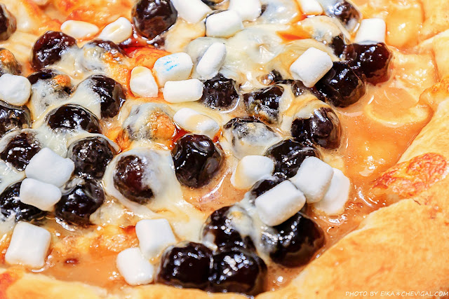 牛室不僅有鹹口味的披薩,另外更有超特別的珍珠奶茶披薩!誘人的珍珠搭配上軟綿的棉花糖,再加上厚實香脆的餅皮,每一口都能感受得到香甜的豐富口感,甜度也不會太甜,如果在吧台上看到先拿再說就對了!