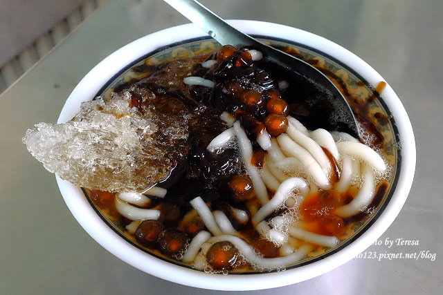 黑糖粉粿的黑糖味其實不明顯,完全被糖水味給蓋過了,但一樣軟Q好吃~