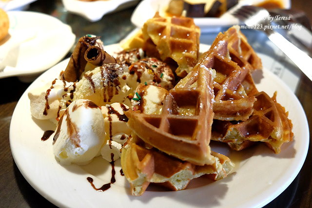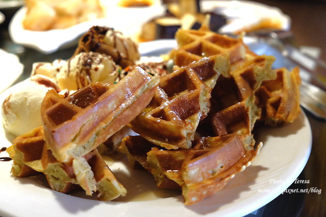鬆餅雖然不是酥脆型,但鬆軟香氣又足,友人直說很好吃