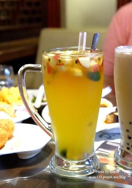 這杯水果茶是以桔茶為基底,雖然點了無糖的,但還是有一點甜甜一點點的香氣~