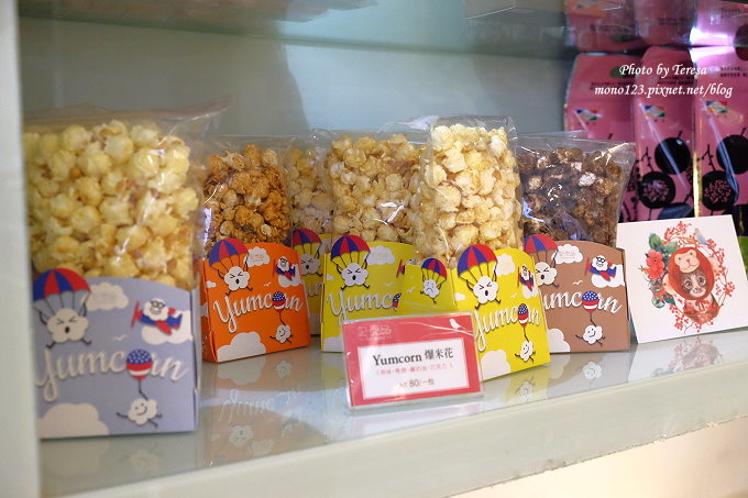 櫃台旁有販售蛋捲、軟糖、爆米花、龍眼蜜…
