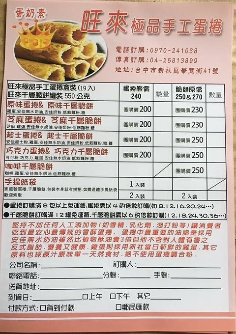 附上訂購單給大家參考,我們已經又默默的揪了一團,想吃的要有等半年的心理準備哦…
