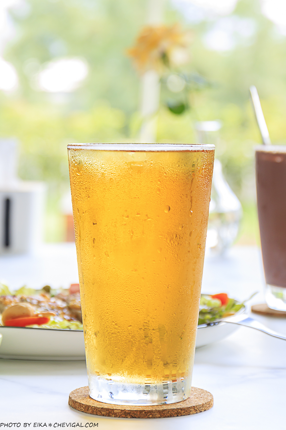 由於前面區域的座位都客滿了,我們這天是在擁有落地大窗的這片區域用餐,往遠處一望就能看見藍天、白雲、綠地相互映照;室內的空調開得不會太強,算是舒適自在的溫度。