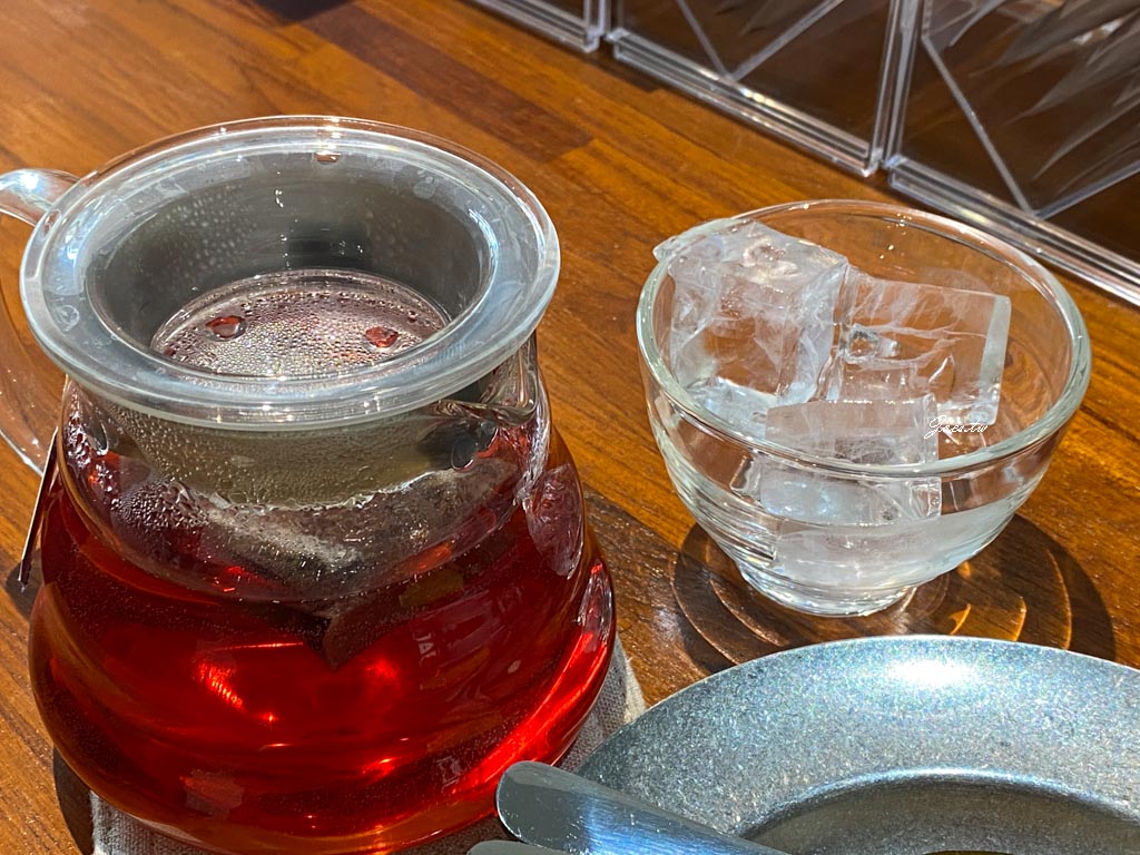莓果茶使用teekanne茶包,亮眼的紅色茶湯店家還有提供冰塊,讓我們想喝熱或冷都行,聊天時店家說這款茶較不建議回沖,若有需求一次就好避免入口的風味過於單薄。