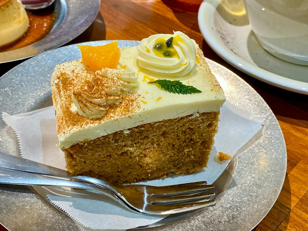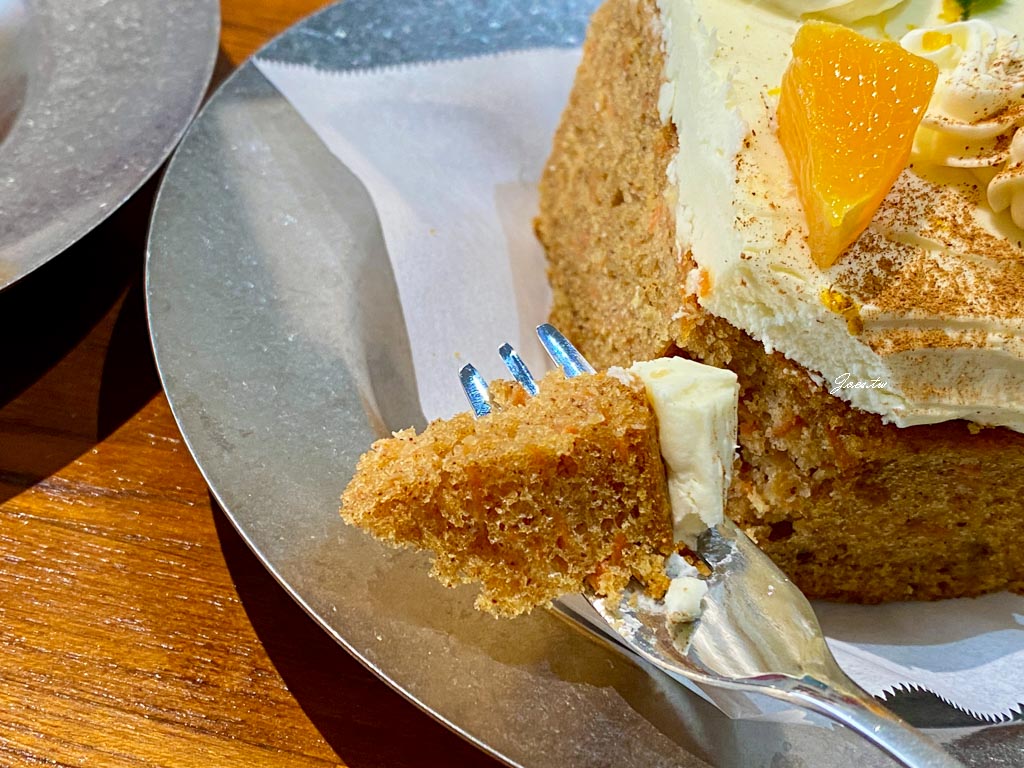 乳酪蛋糕散發出乳酪特有的酸香外還伴有淡淡柑橘類清爽氣息。蛋糕本體的質地偏磅蛋糕,紮實中帶有濕潤柔軟口感。