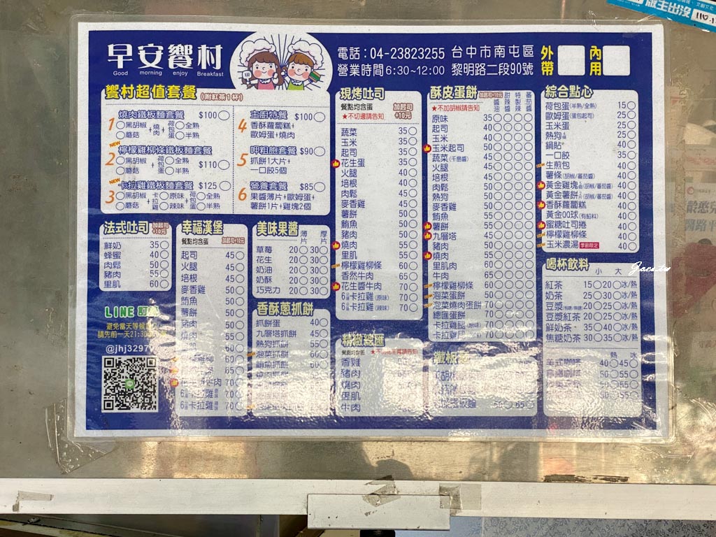 有超值套餐/現烤吐司/酥皮蛋餅/綜合點心/飲品等,可提前用Line預定。