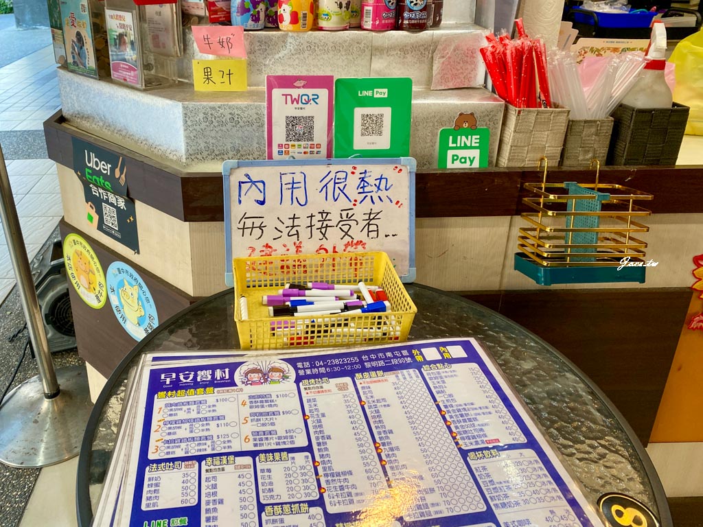 早安饗村採接單製作,在用餐期間能感受到店家的人流量不少,座位不多但翻桌率算快,且外帶人潮沒斷過依舊保有出餐速度。