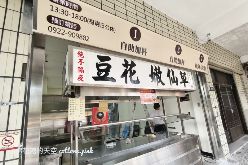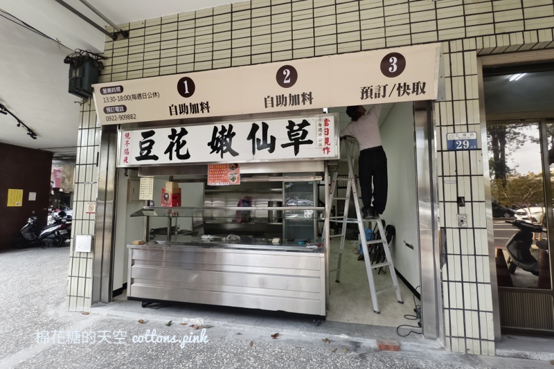 店面就在原本攤位的轉角另外一邊!這次終於有大大的招牌了~但依舊保持沒有名字只寫上”豆花 嫩仙草”!阿季11/26經過現場都還在趕工~
