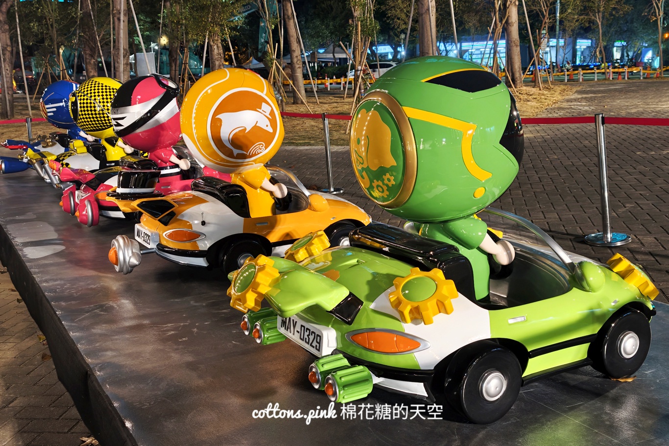 五月天大地遊戲又多了一站要跑!從台中公園的五球和捷運站、公園裡的五公仔~到LALAPART 的STAYREAL PARK、文資園區的MAYDAY LAND…大家都逛不完了啦,洲際棒球場這裡竟然又多了五月天迴力軋車公仔!五月天的每個公仔都換上賽車裝還有搭配自己的賽車~超級可愛!