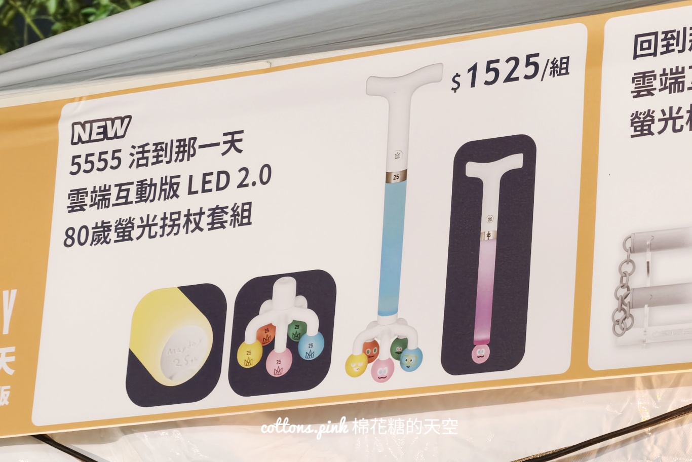 在脆上面超多人討論的~活到那一天80歲螢光拐杖套組!原來是真的~現場就有販售,名字也取得太有趣了吧!還有其他特殊造型的螢光棒也是都超可愛的~就是價格偏高啦!
