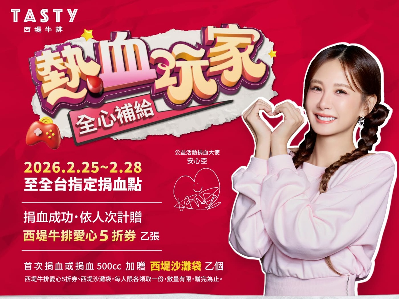 來來來~大家快來捲起袖子獻出熱血啦!2/25開始到2/28到配合的捐血中心捐血加碼再送西堤牛排單客套餐愛心五折券唷!貼心提醒大家~別忘了捐血要帶身分證件正本一起來唷~