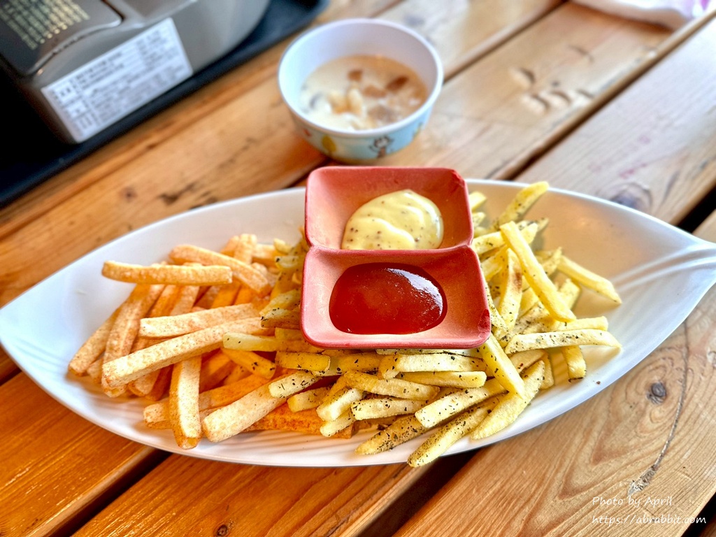 炸物的部分我還多點了個薯條,端上桌的時候發現這個薯條很特別,有兩種顏色,仔細一看發現一半是脆薯,另一半是薯條餅乾,孩子們吃得蠻開心的。