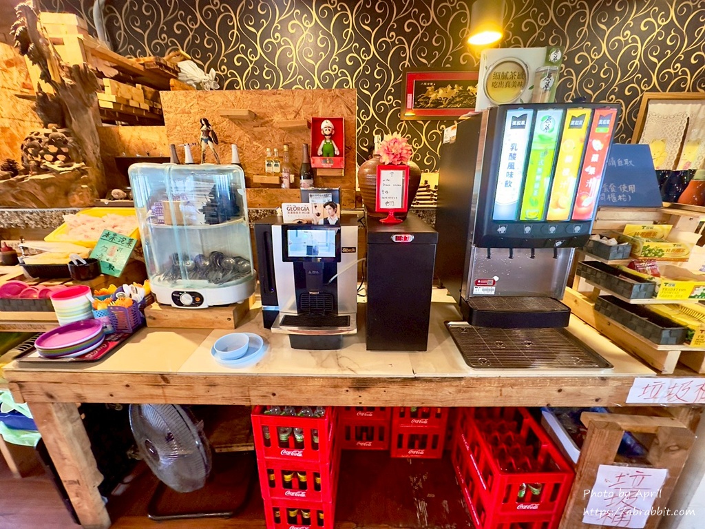 二樓用餐還有無限暢飲的自助吧飲品,有飲料機、咖啡機、罐裝汽水可樂、茶包,還有冰淇淋,很夠喝。