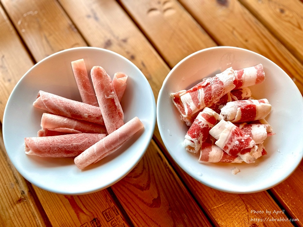 肉品可以選擇豬肉、牛肉、海鮮任選,還能加購,火鍋附餐的部分都是附贈一碗白飯,也可以更換成冬粉或王子麵。