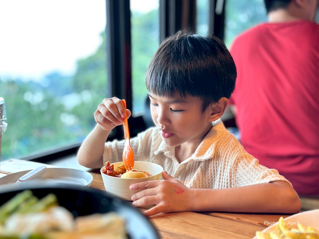 我們剛到的時候,想說一樓都沒什麼人,沒想到的是,客人都在二樓用餐啦!二樓的座位區也非常大,很多位子,窗邊是採開放式落地窗設計,視野開闊,還可以看得到遠處的山景。