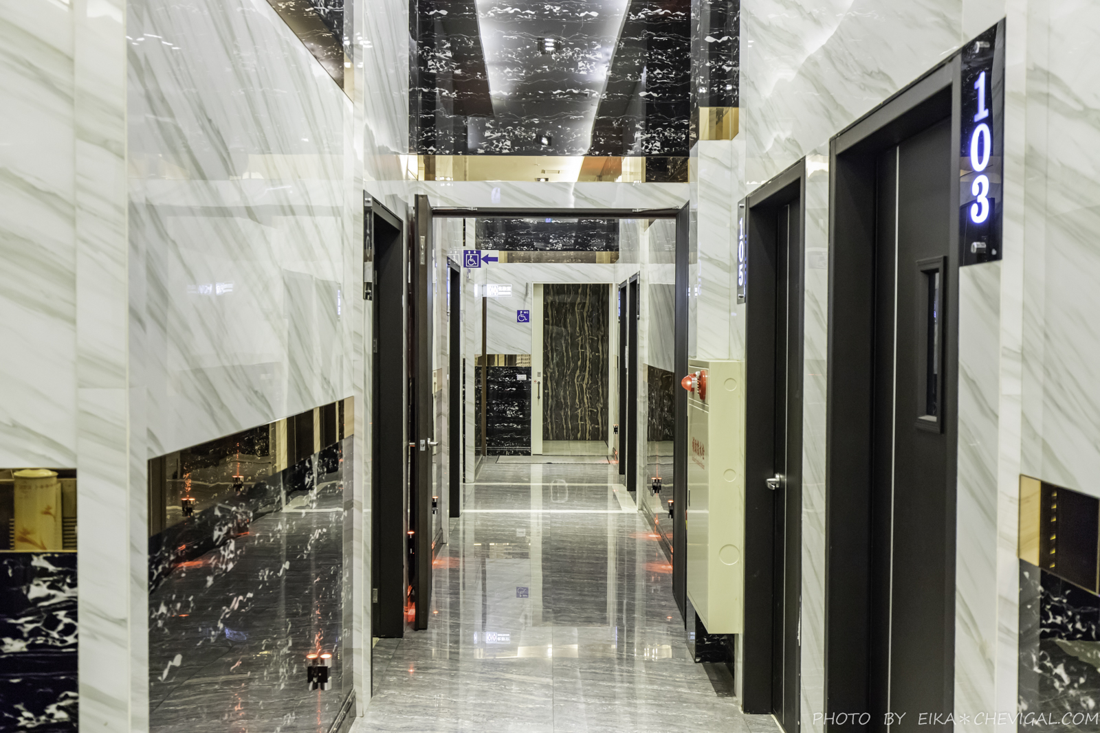 包廂間的走道也很寬敞,挑高的大理石紋理設計,旁邊還點綴著不時會變幻色彩的燈光,質感很不錯。
