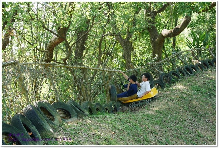 滑草下來後,要沿著旁邊將車拉上坡,還滿費力的,一趟就累了。