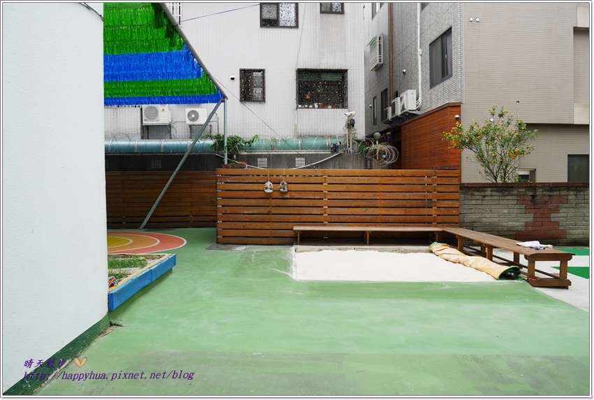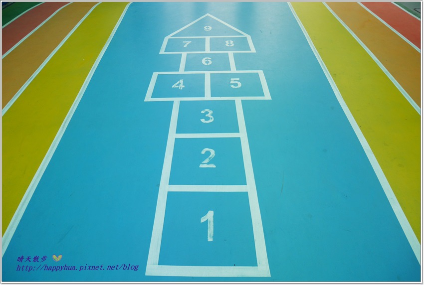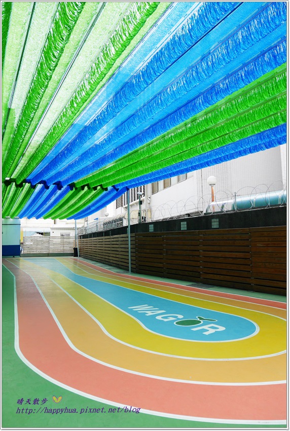 除了室內場地,葳格也有戶外活動空間,最顯眼的就是這座上方有遮蔭的彩色跑道。