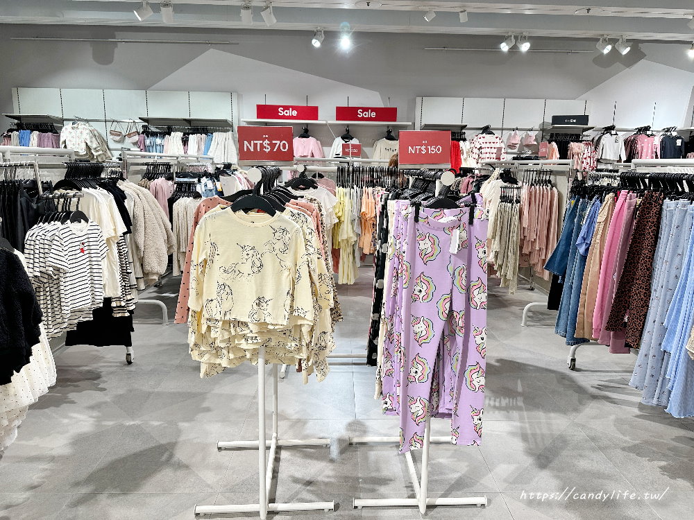 在往店裡頭走去是童裝區,特價的款式也非常多,竟然還有70元的童裝,讓媽媽們直接買好買滿