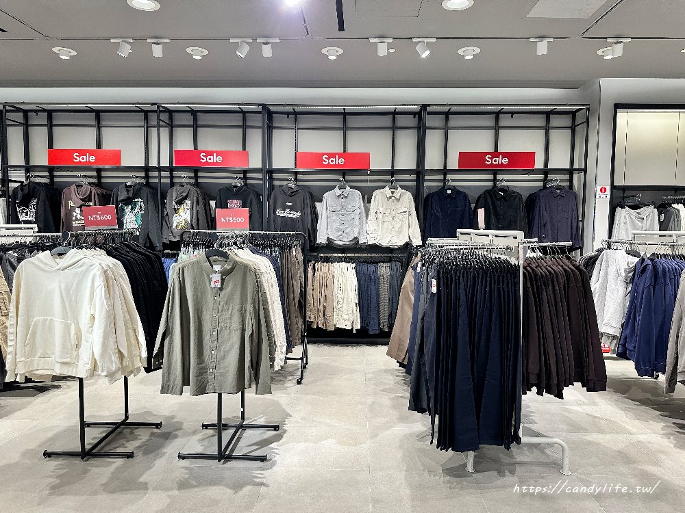 最後面是男裝區同樣沒讓人失望!特價品項從上班必備的襯衫類,到休閒百搭的帽 T、長袖上衣應有盡有。另外還有美式風格的工作褲、休閒長褲還是經典牛仔褲,通通都在折扣行列,這區款式也很多,推薦男生們一定要來親自試穿挖寶