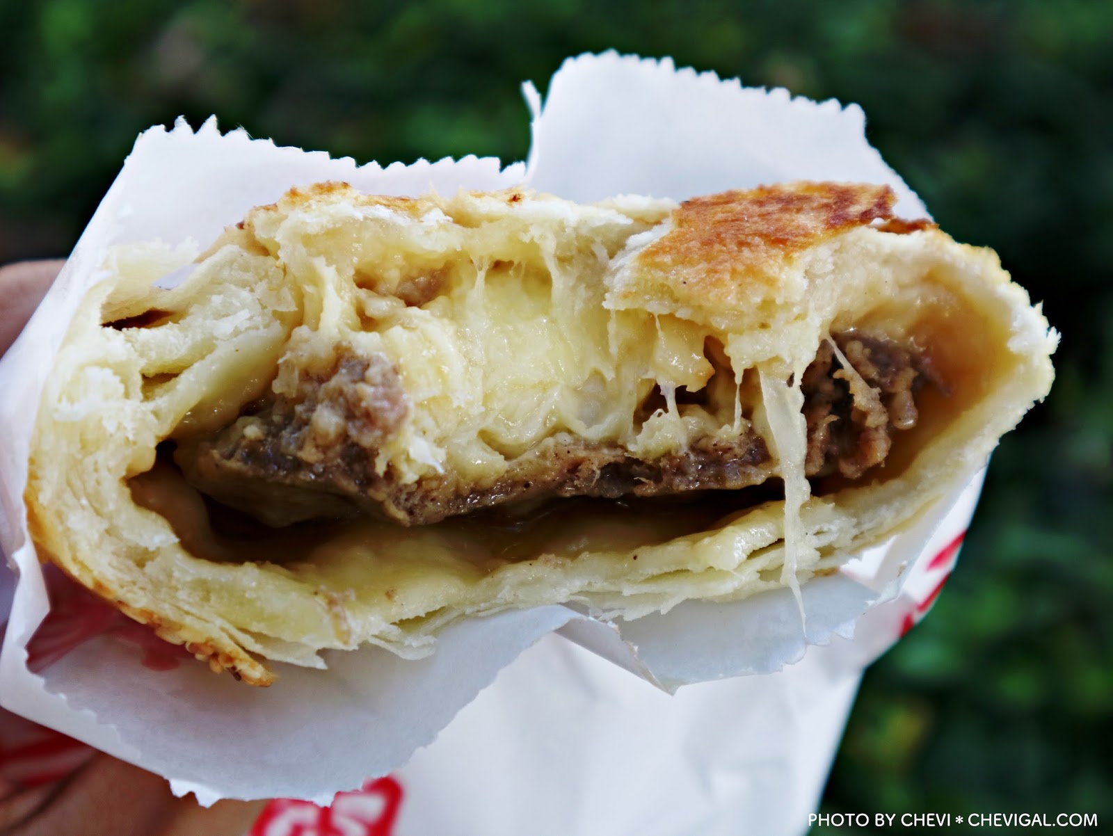 咬到中間就會看到香濃的起司啦!起司和豬肉的香氣不會互相干擾,各自的香氣搭配在一起剛剛好,吃得到起司的香濃,卻不會膩口。兩款口味的肉汁都超多,一不小心又要洗衣服啦!