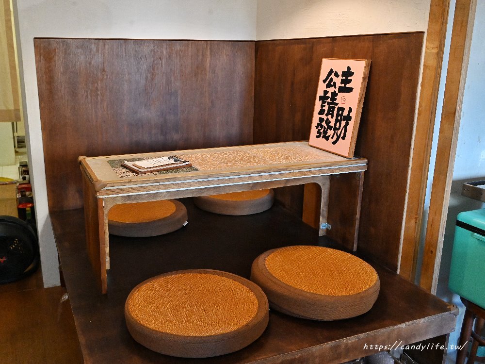 胡同兒特別設置了這區塌塌米式的座位,讓人一坐下就像回到舊時院落般的自在,低矮的小桌搭配圓形蒲團,簡樸卻充滿中式生活的韻味;木質調的空間營造出沉穩安靜的氛圍,非常適合三五好友窩在這裡喝茶、享用美味甜點