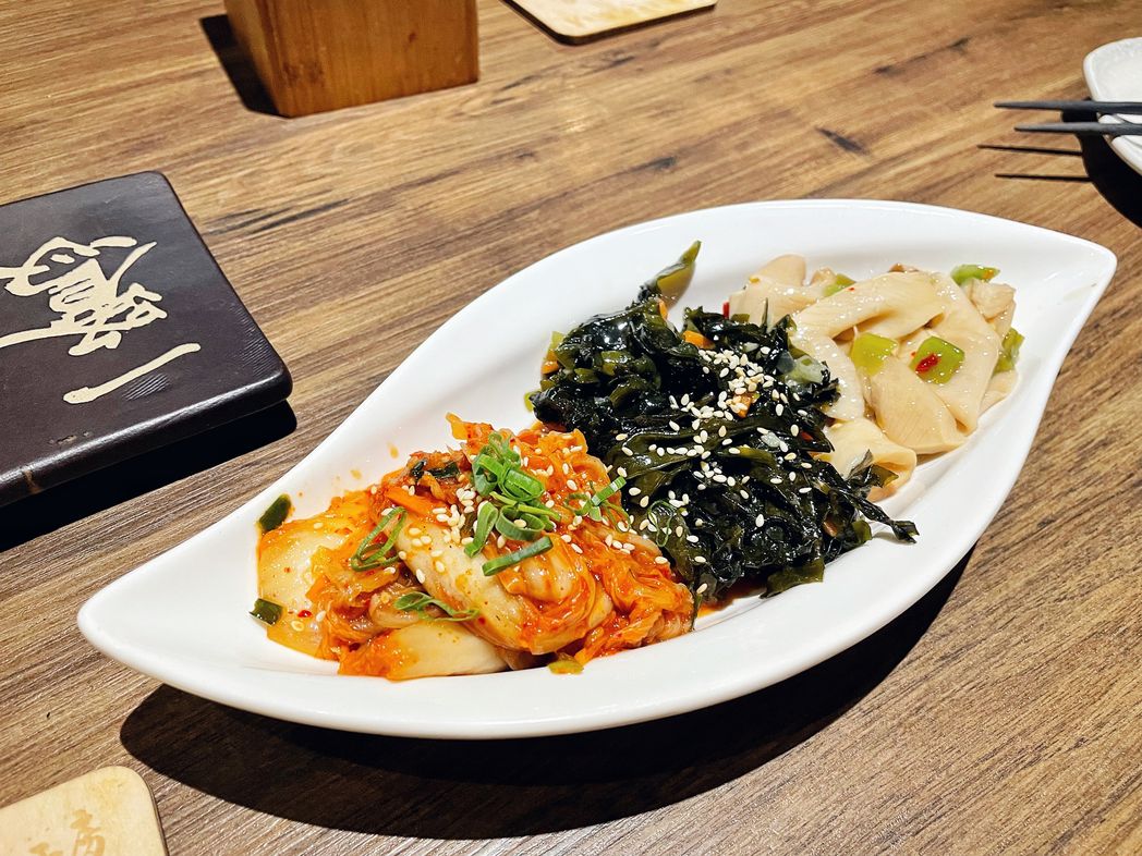 這是招待的小菜,有辣泡菜、醋溜海帶芽和芥末杏鮑菇,但因為有辣度所以我就沒有品嚐了