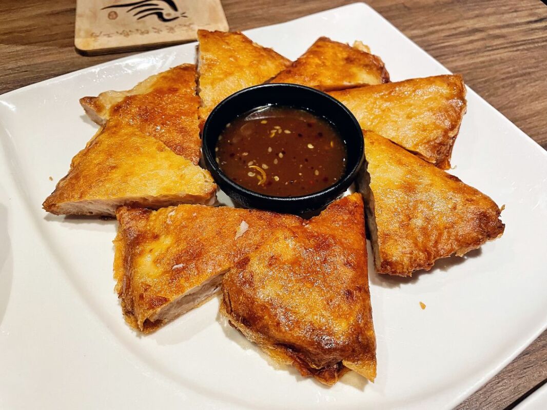 這個蝦餅還蠻意外的好吃,是可以吃得到蝦肉的爽脆口感,中間的醬汁是帶有紫蘇的酸辣醬,但其實甜酸味偏重,倒像是梅子醬的感覺,很解膩又很涮嘴,些許的芝麻香氣在尾韻更是畫龍點睛