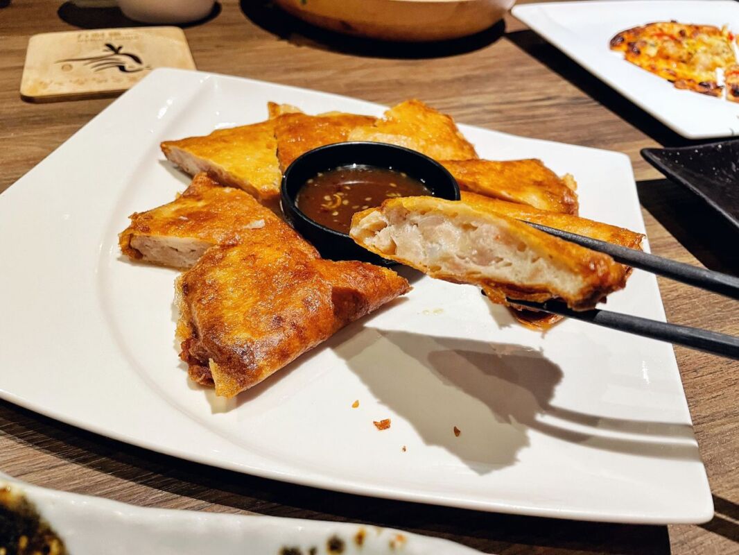 這道蝦餅裡面使用的是英皇雞肉、透抽和蝦肉製成,吃起來Q彈有口感,配上炸至酥脆的外衣,當天我們一行六個人分吃不夠,長輩們說不會太油膩,味道還蠻喜歡的!