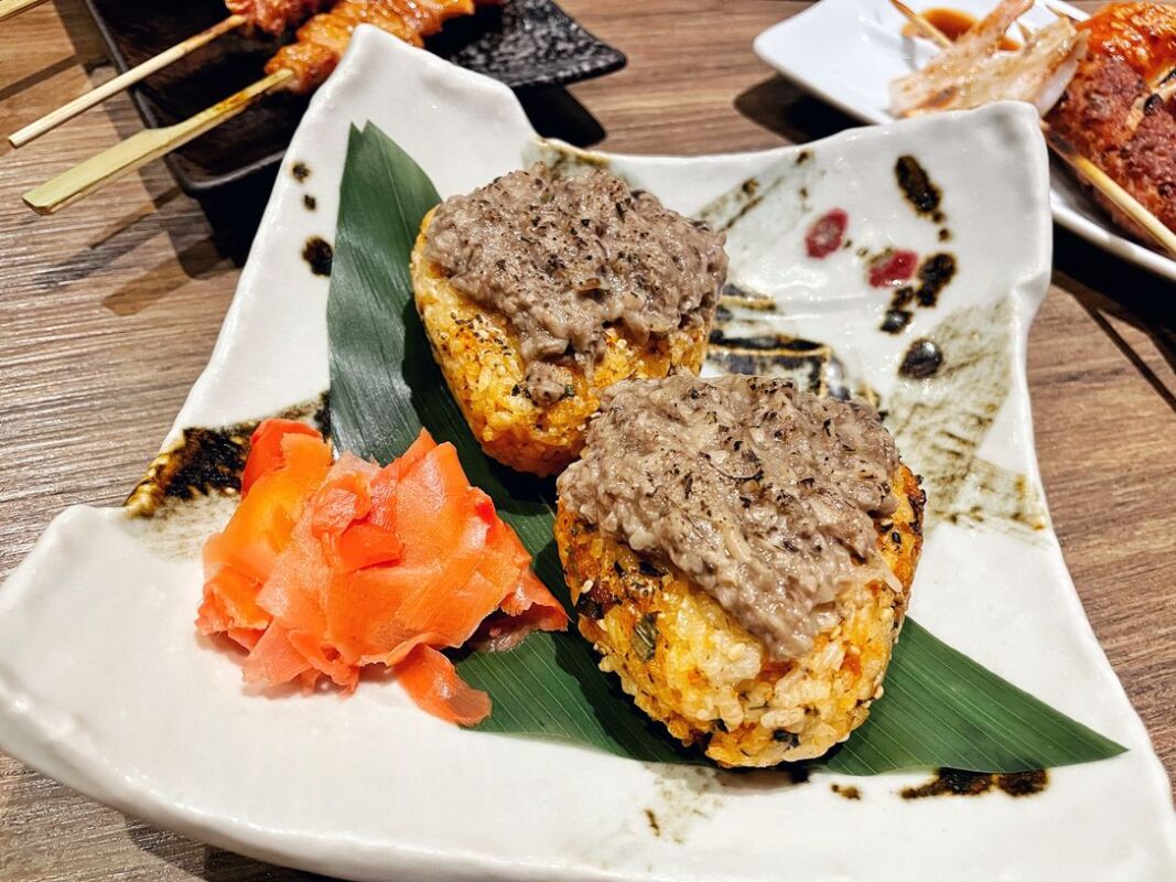 招牌炭烤飯糰有明太子、松露蕈菇、紅玉味噌三種口味可以選,剛好長輩們都選了松露蕈菇,烤飯糰表層有經過炙燒,吃起來帶有鍋巴的口感,配上濃郁的松露蕈菇醬更顯香氣,而且飯糰捏得很扎實,還蠻有份量的!