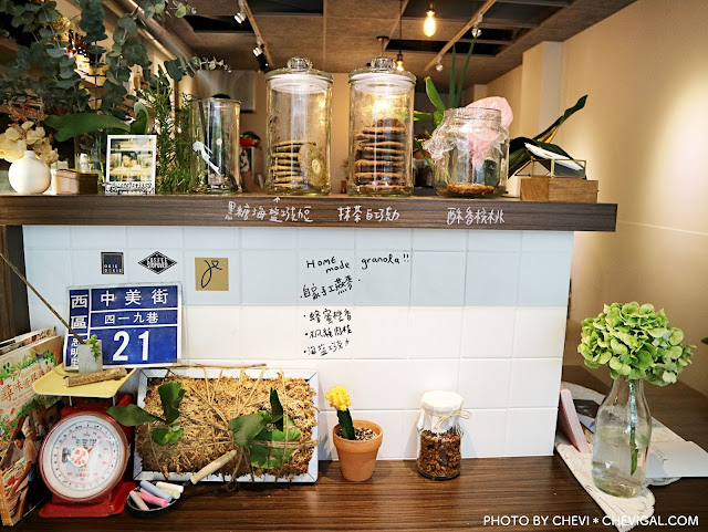 牆上的小黑板則有飲品的價位,一旁還有販售手工餅乾。