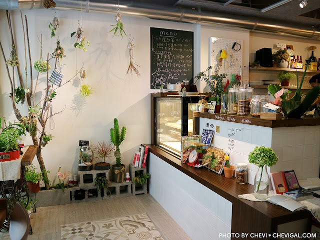 內部的裝設清新淡雅,主要以木質桌椅,與帶有綠意的植栽簡單點綴。
