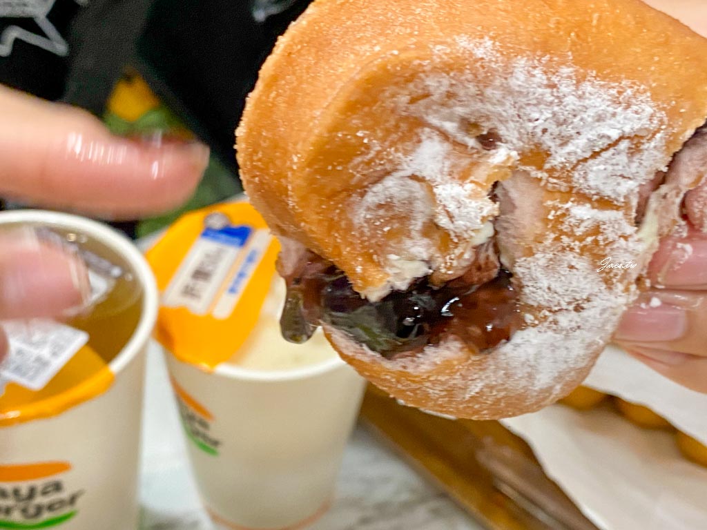生甜甜圈拿在手上時能感覺到表面有些油感,二款內餡的風味是常見市售內餡甜味走向。