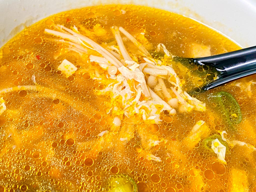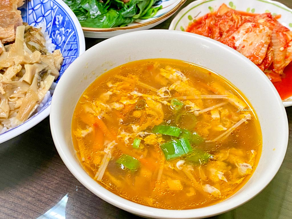 酸辣湯是沒有勾芡的入口酸度明顯,辣度較薄弱但香味不錯,帶著淡淡的果酸甜香,詢問店家後才知道是使用多種醋調和,加上配料的處理方式,讓這碗看似平常不過的酸辣湯,喝起來層次相當豐富。