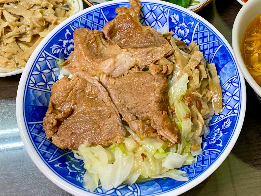 飯有兩種配菜 如果不喜歡筍乾的人可以請老闆更換,飯量感受比一碗飯再多一點點的量,但肉量頗足。
