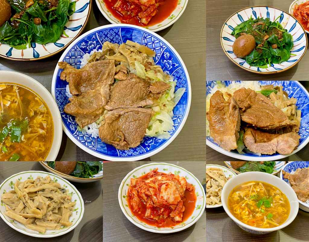 這張是韓式泡菜/燙青菜/筍乾/滷蛋/紅燒肉飯