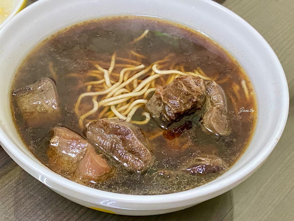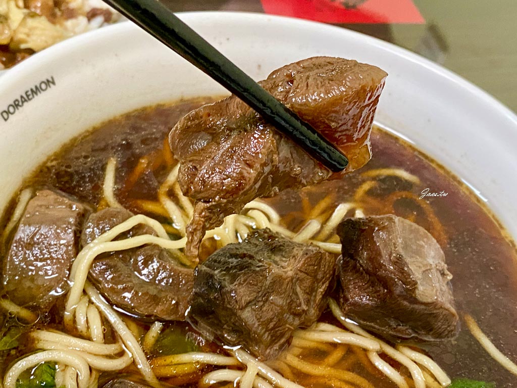 牛肉塊口感柔嫩,部份肉塊帶有牛筋與膠質感,吃來油花豐富卻不油膩,咀嚼時肉汁明顯流出,軟嫩之餘仍保有彈性與咬感。