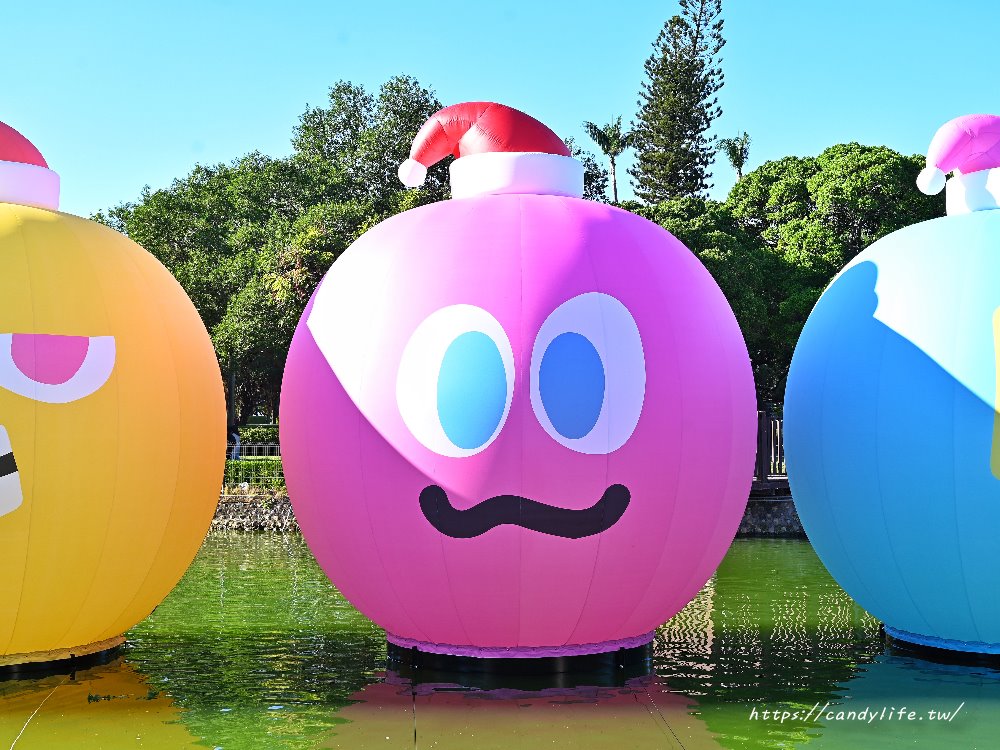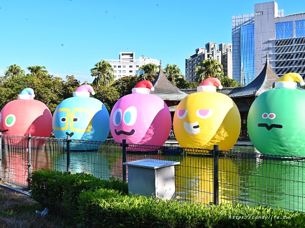 最近脆上爆紅的台中景點,除了各大百貨的聖誕樹外,還有這五顆超萌的五月天球球公仔,就降落在台中公園湖心亭中,因應聖誕節還戴上了可愛的聖誕帽,氛圍感滿分,五月天粉絲必衝!