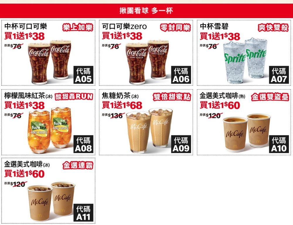 2026麥當勞優惠券 – 揪團看球 多一杯(買一送一)