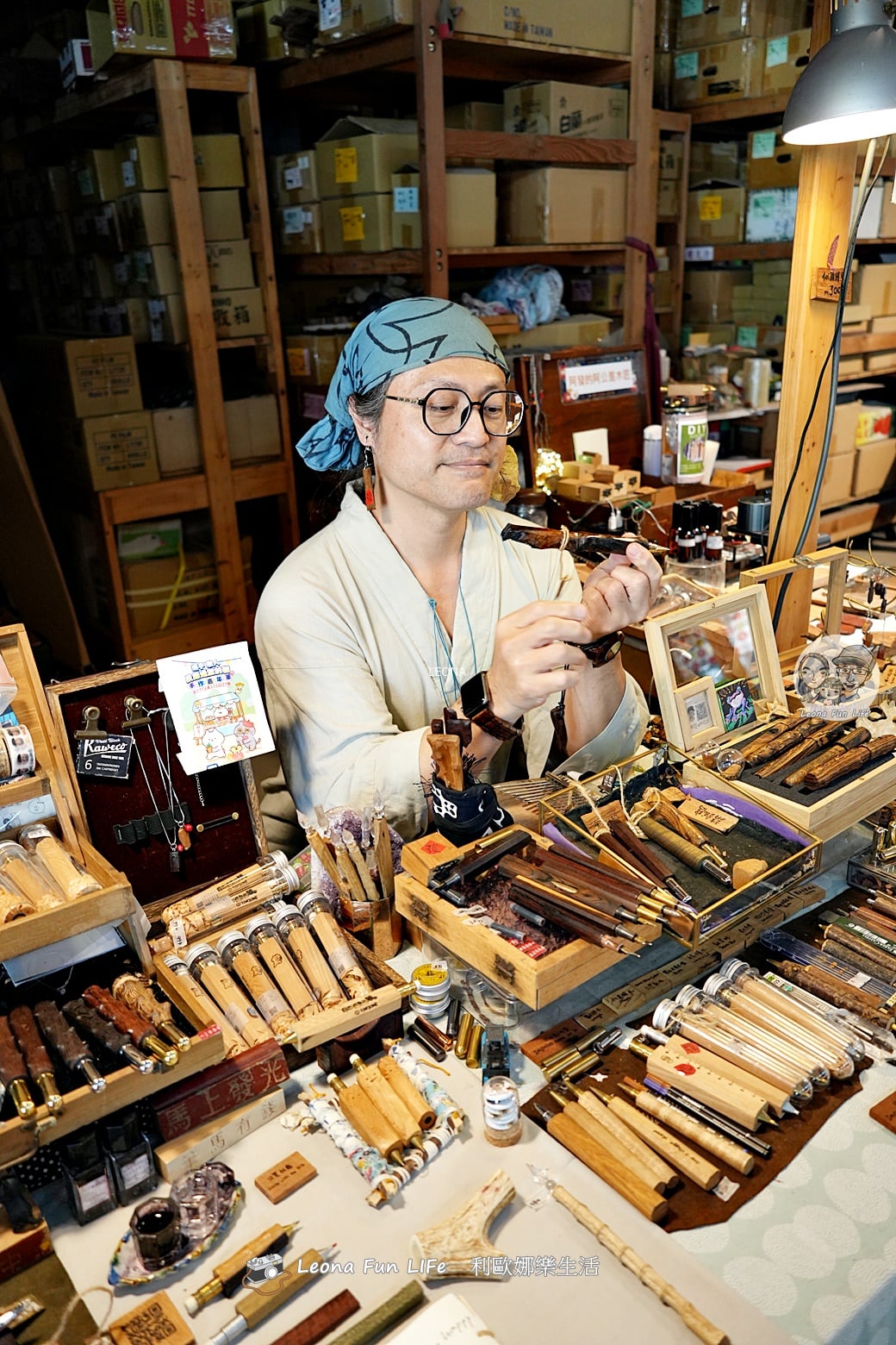 攤位上有不少造型特殊的木筆,