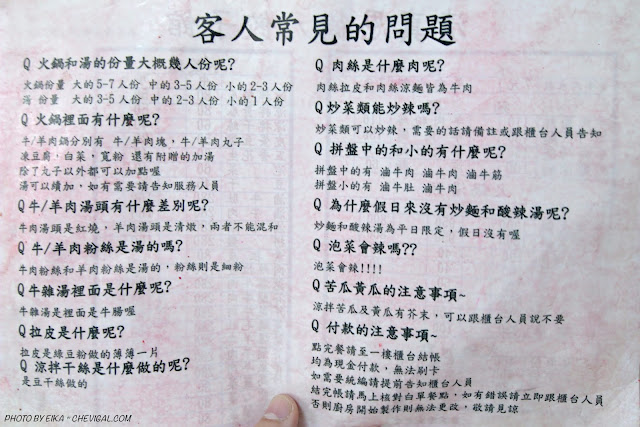 菜單背面也很貼心,店家整理出了許多客人常問的問題,就連火鍋的份量大小都有說明,結果我們是正要結帳時才發現有這些備註,真的後知後覺哈XD