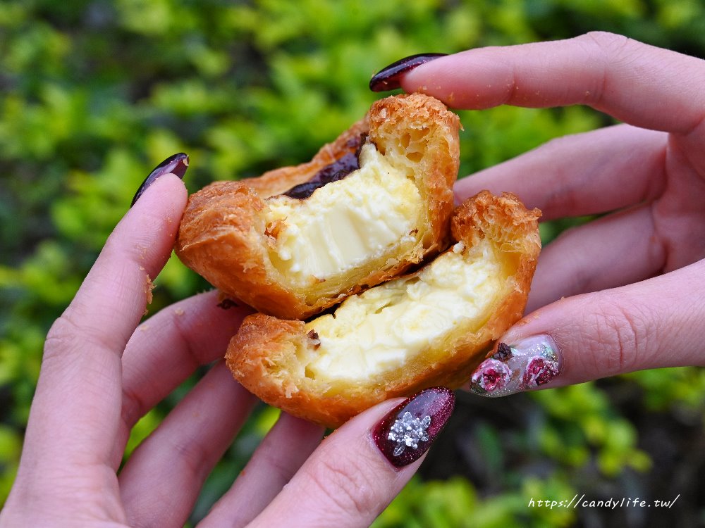 拿坡里披薩這款原味蛋塔的外皮,比起一般的葡式蛋塔吃起來更為厚實有感,每一口咬下去,都能感受到那種「喀滋喀滋」的千層酥脆度,內餡質地非常細緻綿密,吃起來真的像極了剛出爐的熱布丁,濃郁的蛋奶香氣在嘴裡化開,整體吃起來不會太甜膩,吃完一顆還會想要再來一顆