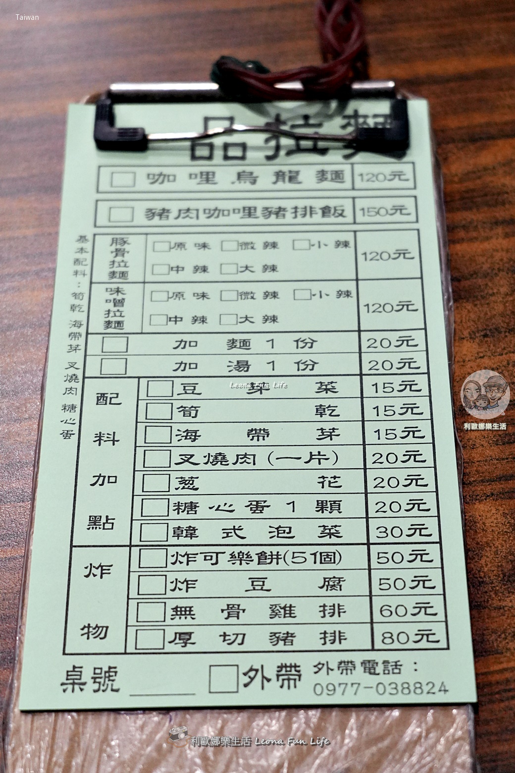 勤益科大美食 一品拉麵 菜單