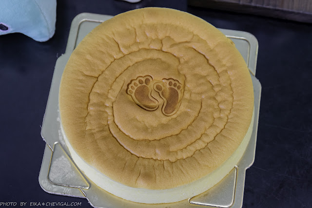 表面印有可愛的小腳印,金黃且帶點微膨弧度的蛋糕體看起來特別討喜,以份量來說,送禮也不失大方。