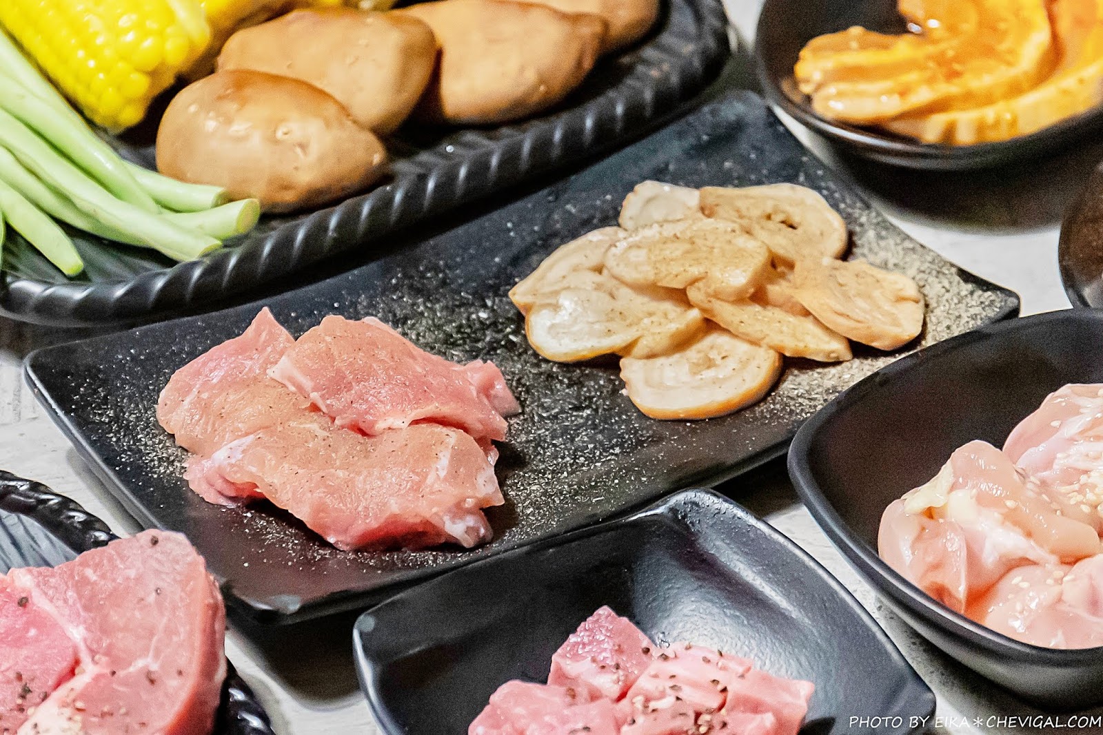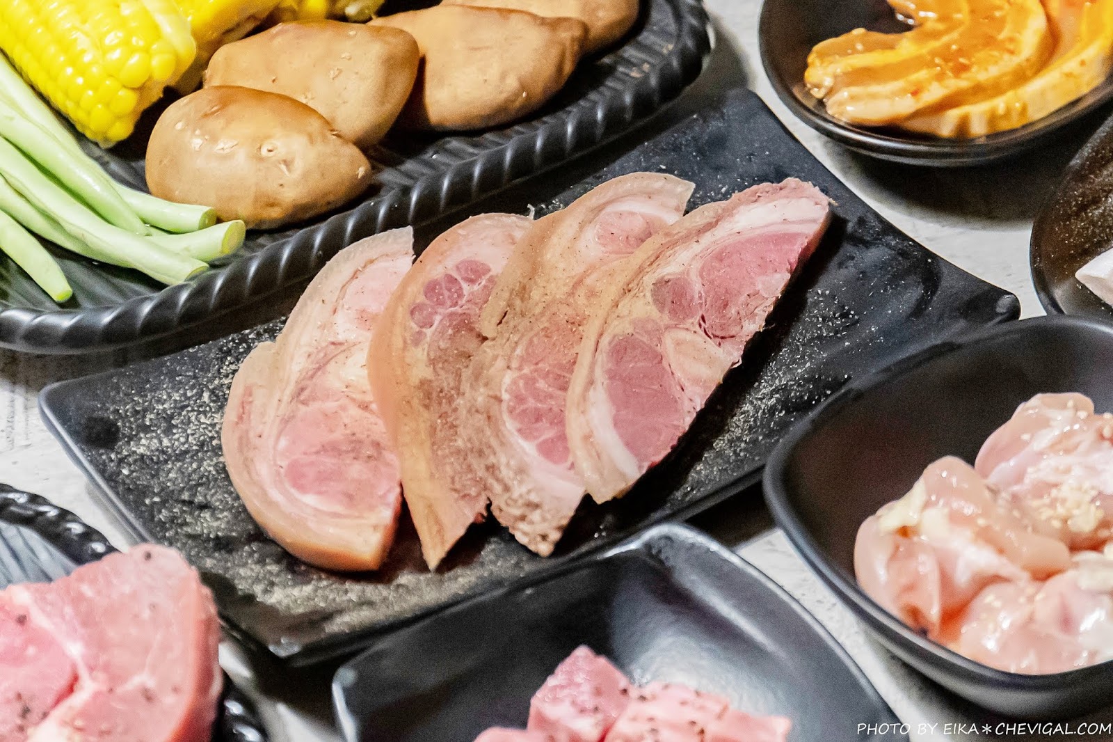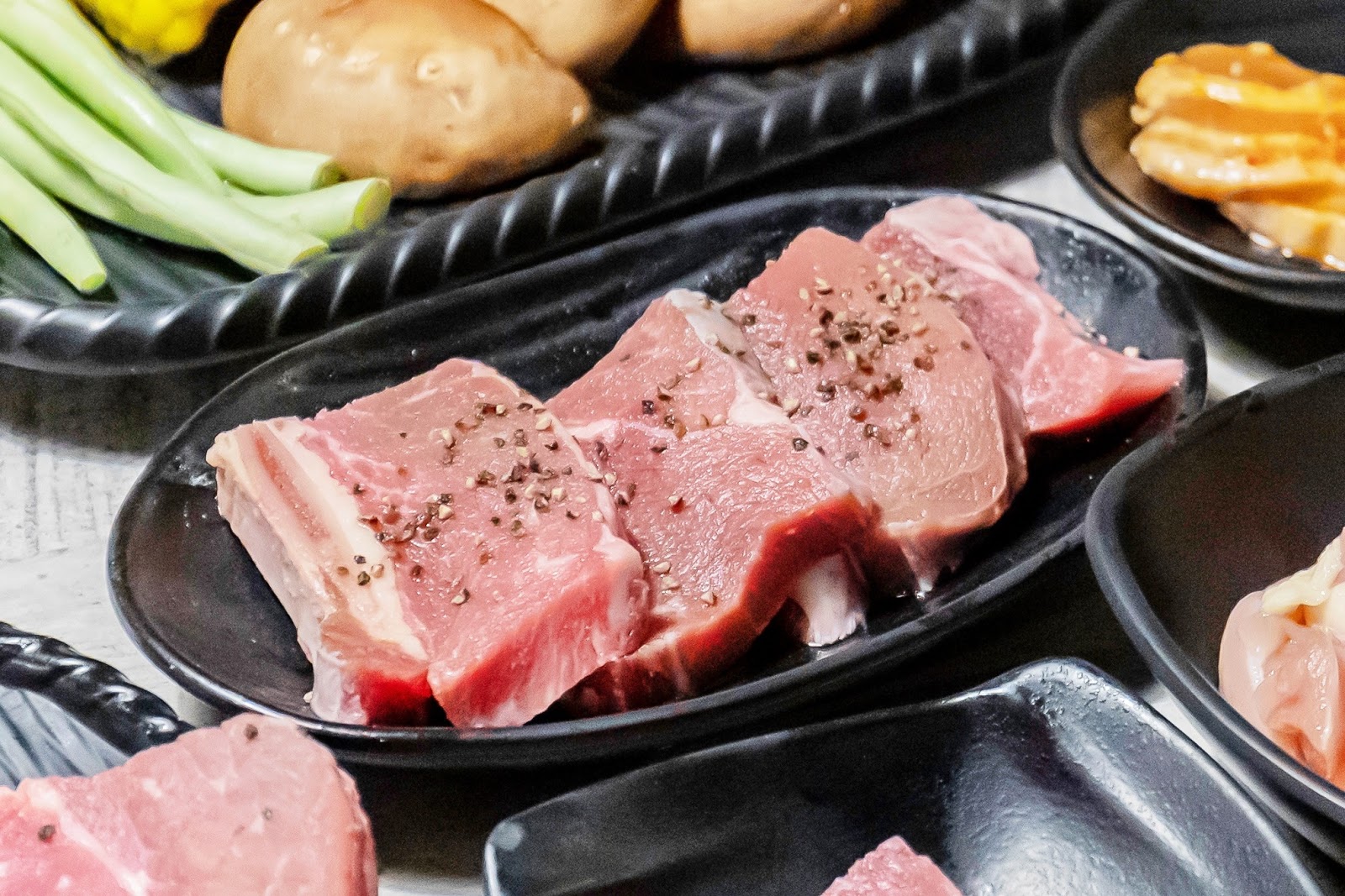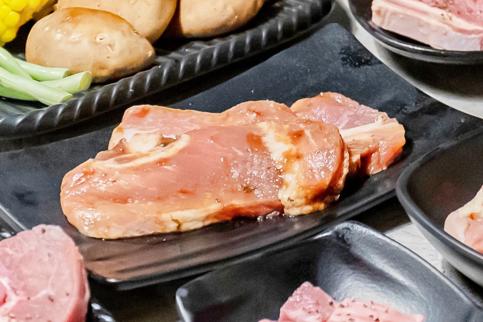我們另外又點了美國醬燒雪花牛、美國醬燒板腱牛、澳洲特級沙朗牛,豬肉則點了韓式厚切豬五花與黑胡椒豬里肌,我們特別喜歡韓式厚切豬五花的調味,鹹鹹甜甜蠻好吃的耶!