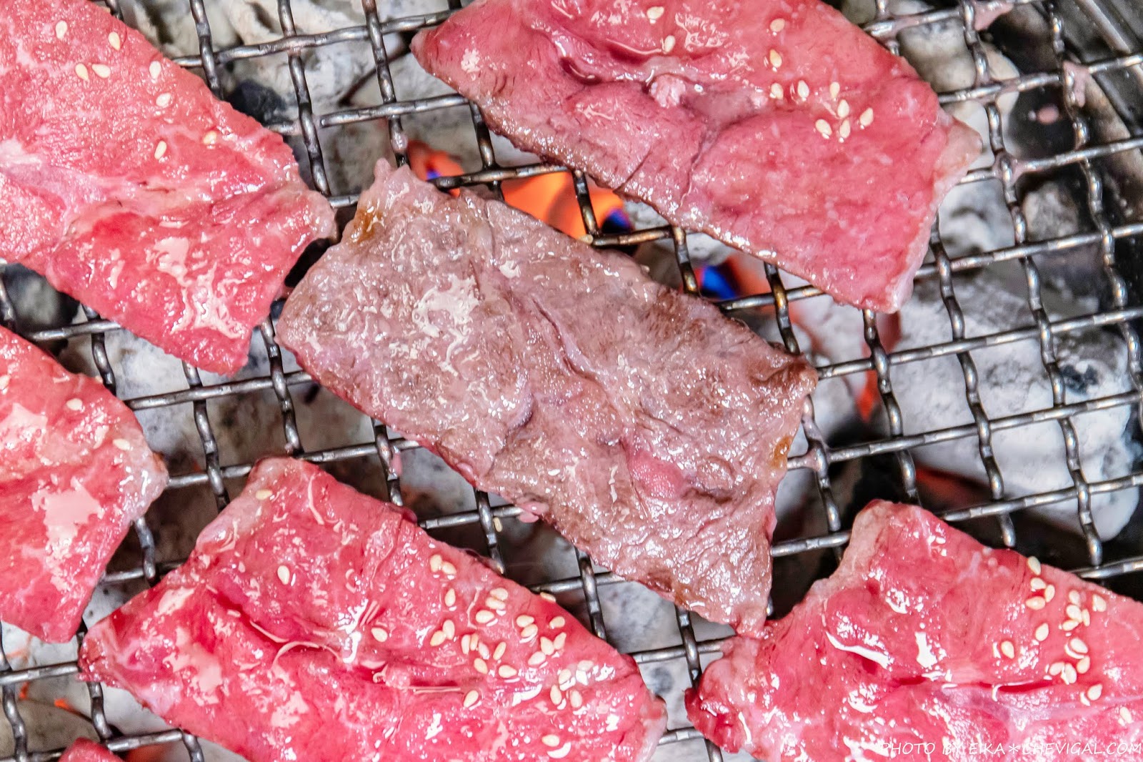 牛舌也是我們到燒肉店必點的品項!店員還很貼心地提醒我們要怎麼烤最好吃~只要以單面下去炙烤,讓肉質呈現五至七分熟的時候就可以準備享用啦!